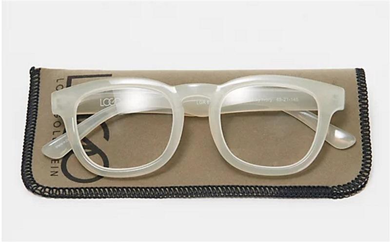 The squared signature frames feature designer details and LOGO imprints near the temples, while the soft case stylishly stores your new look when not in use.