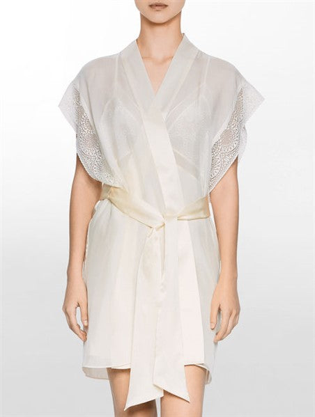 NEW Calvin Klein CK Black Endless Silk Lace Robe QS5679 Ivory M/L #97322