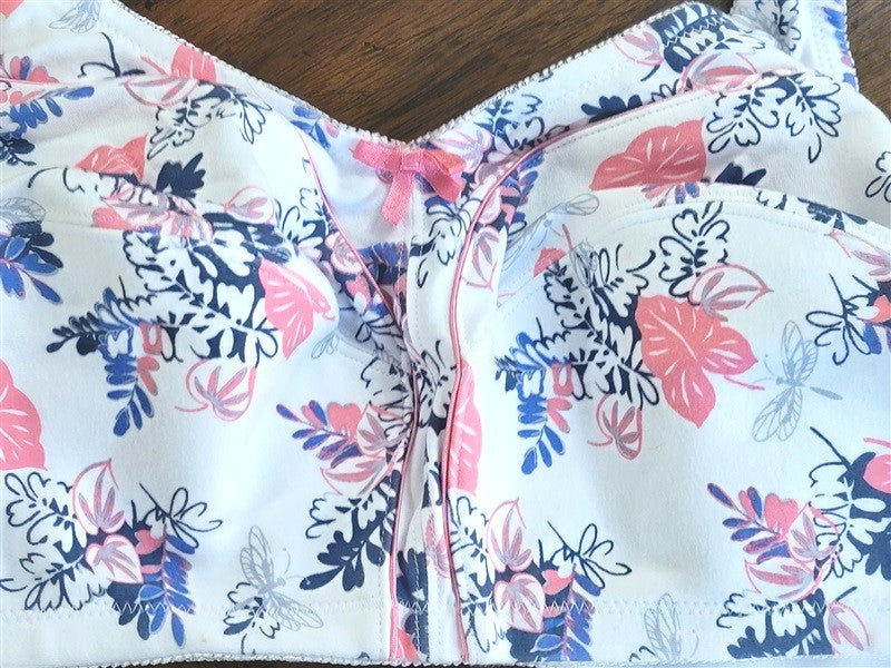 NEW Comfort Choice 42C Soft Cup Full Coverage Wire Free Pink Navy Fern Bra 98002