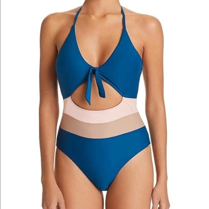 New Ella Moss Neopolitan Blue Tan & Pink Halter One Piece Swimsuit