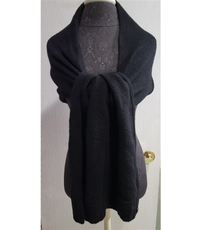 New Fraas Moss Stitch Knit Rectangle Scarf Wrap Black 100% Cashmere #98285