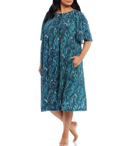NEW Go Softly S Paisley Print Short Sleeve Crinkled Patio Dress Blue #83924