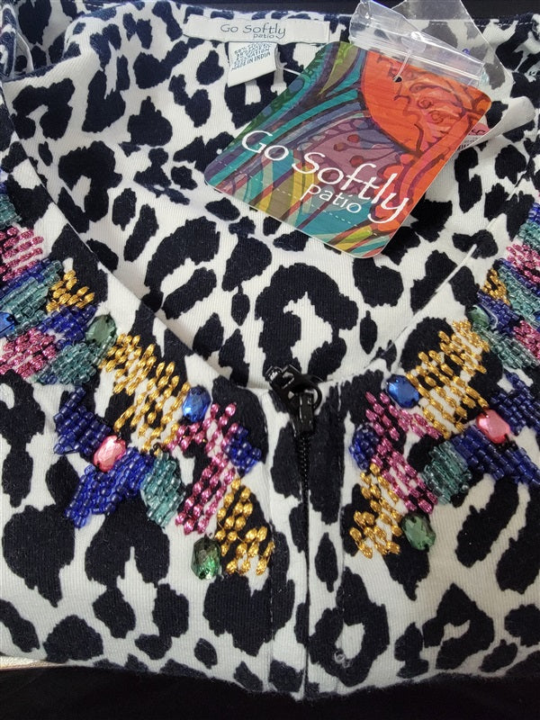 NEW Go Softly SM Patio Dress Kaftan Black White Leopard Print #83503