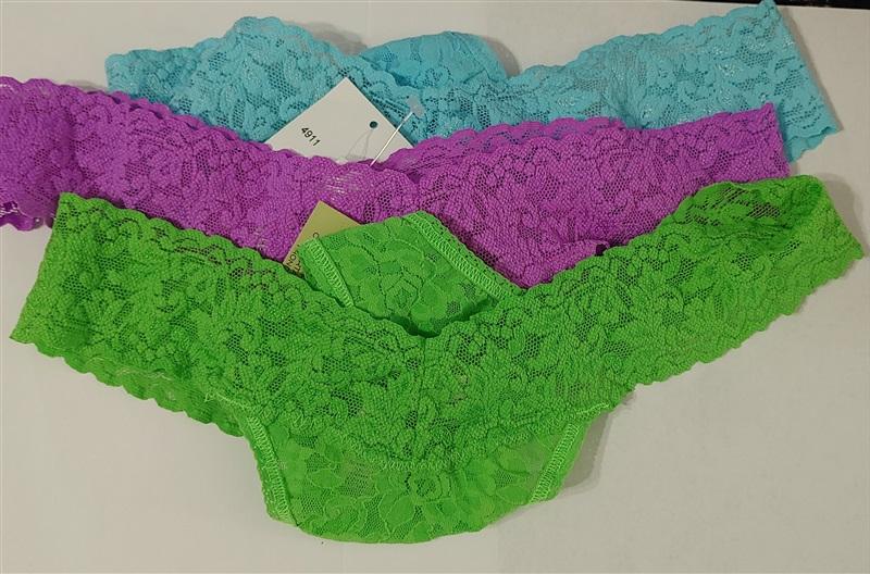 NEW Hanky Panky 3PR Purple Green Blue Signature Lace Low Rise Thong 82386