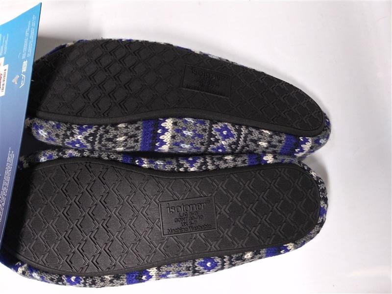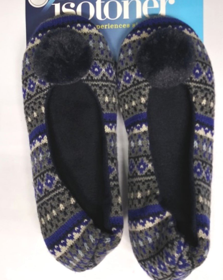 NEW Isotoner Blue Gray Fair Isle Sweater Ballet Slippers w/ Pom Pom MD #76329