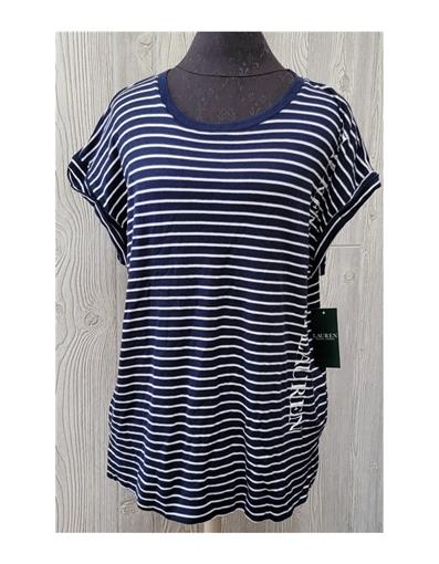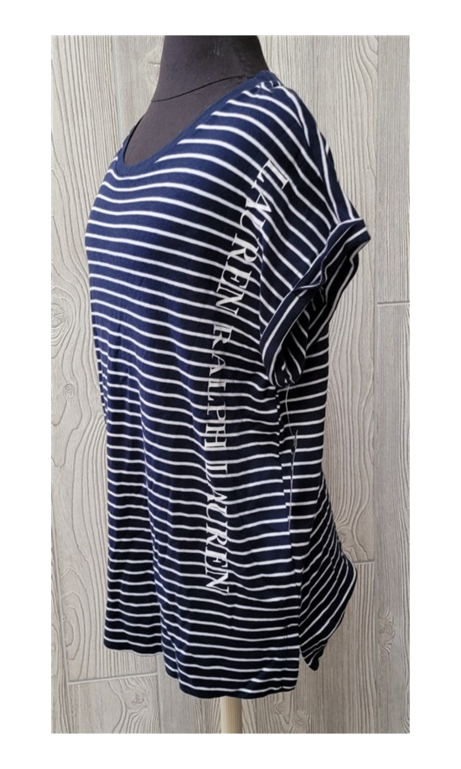 New Lauren Ralph Lauren LG Navy & White Stripe Logo Cotton T-Shirt #89571
