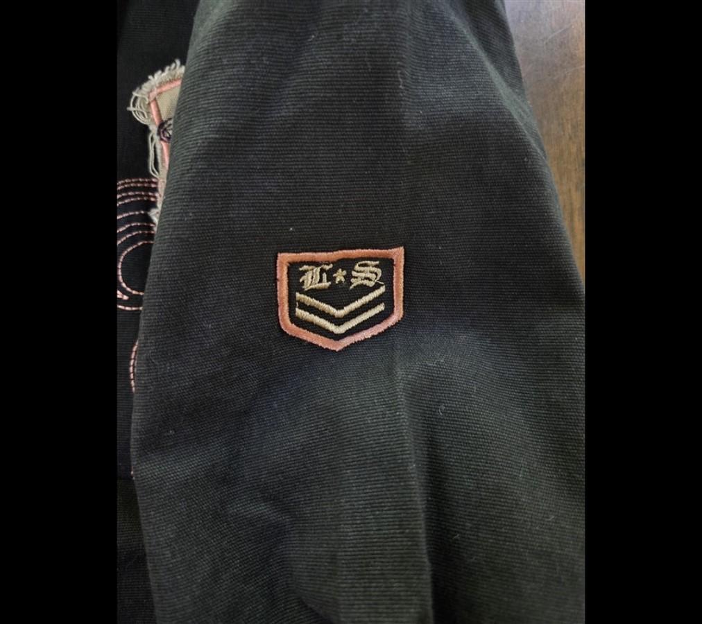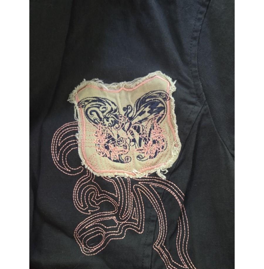New Love Stitch M Military Style Patchwork Embroidered Utility Jacket Blk 128656