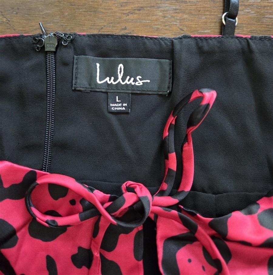 New Lulus L Red & Black Leopard Print Silky Mini Slip Dress 128301