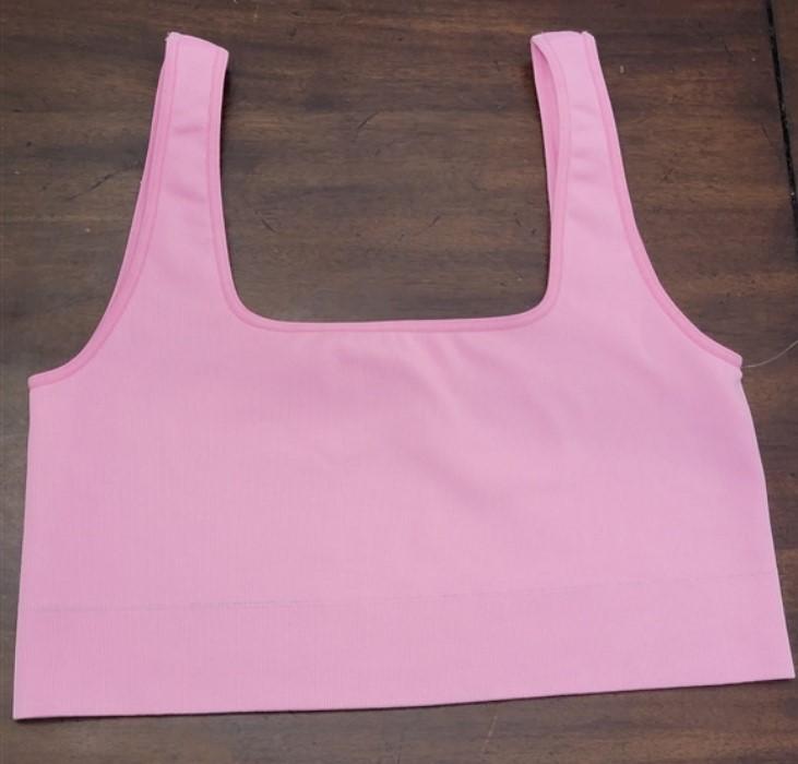 NEW NUX XL Sleek Square Crop Top Microfiber Ribbed Sports Bra Pink #109746