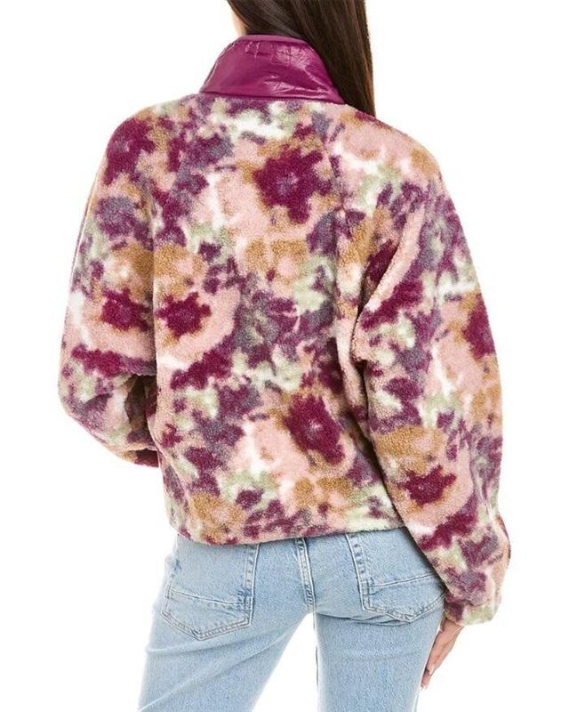 NWOT Calme M Printed Fleece Jacket Raspberry Pink 110151