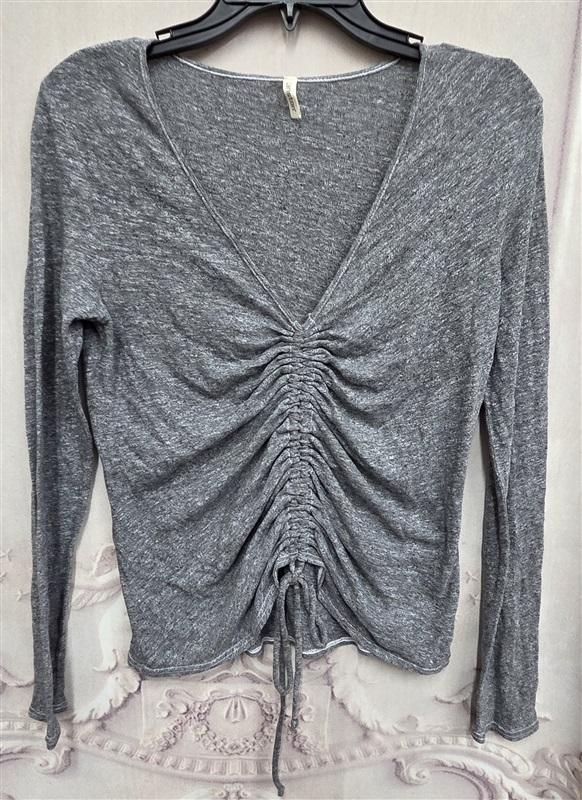 NWOT Lanston XS Ruched Tie Front Long Sleeve V Neck T Shirt Top 130456