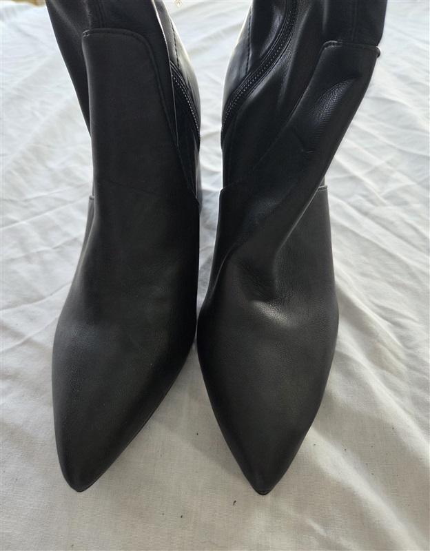 NWOT Marc Fisher 5 Pointed Toe Over the Knee Black Leather Tie Boot 131800