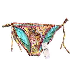 NWOT Pilyq Yellow Paisley S Cheeky Side-Tie Stitch Bikini Swim Bottom #98122