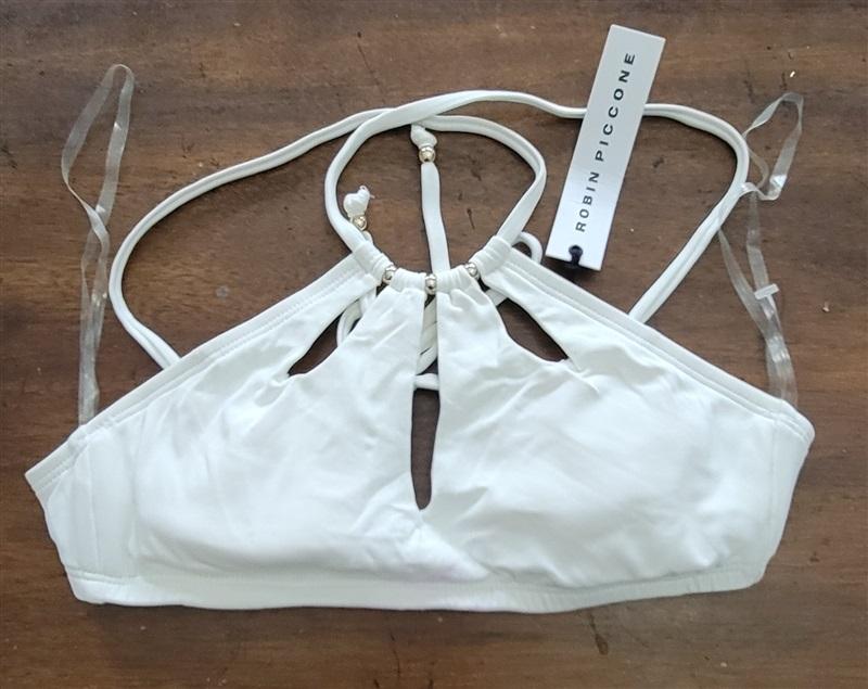 NWOT Robin Piccone XS Standard High Neck Cut Out Bikini Top White 123349