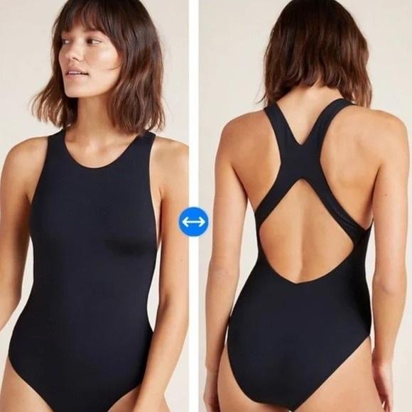 NWOT Seafolly Carpi Sea 6 USA Black Ribbed High-Neck One-Piece Swimsuit #103035