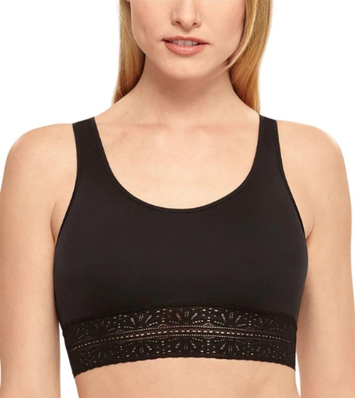 Deep V lace back Brush lace band for support and comfort Slips on over the head (no hook-and-eye closure)
