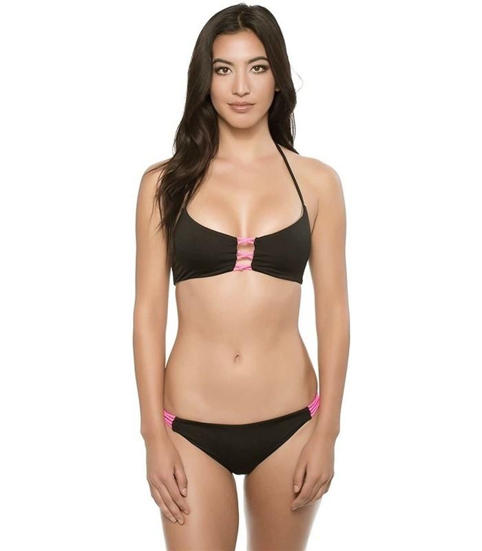The Basta Bondi Reversible Bungee Bikini offers black on one side and silver color on the reverse with a pop of neon pink color at the side straps and middle top.