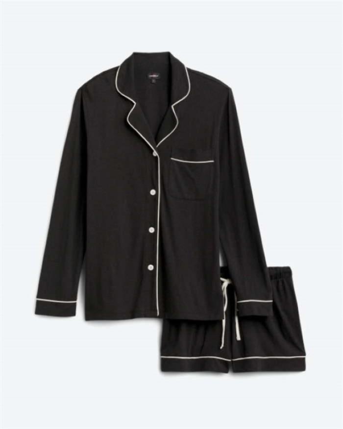 NWT Cosabella 1XL Bella Long Sleeve Top & Boxer Shorts Pajama Set Black 98625