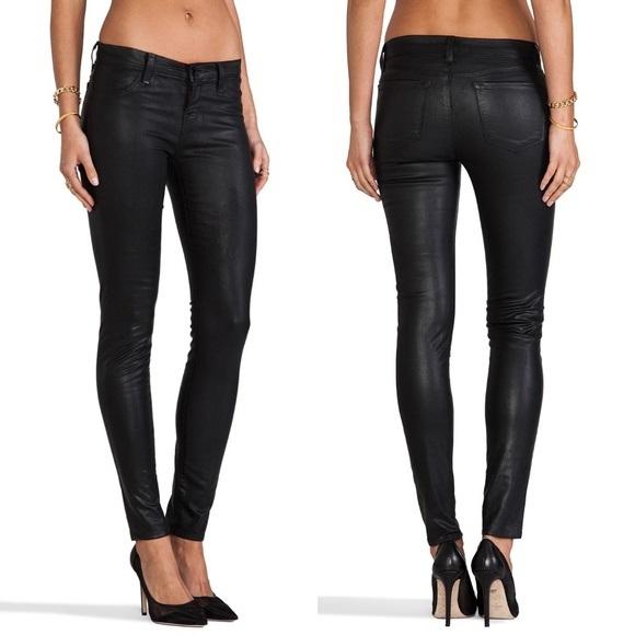 NWT J Brands 28 Super Skinny Gold Black Leather Look Coated denim 112298