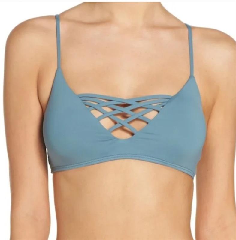 NWT L*Space Jamie L Criss Cross Bikini Swim Top Blue 111475