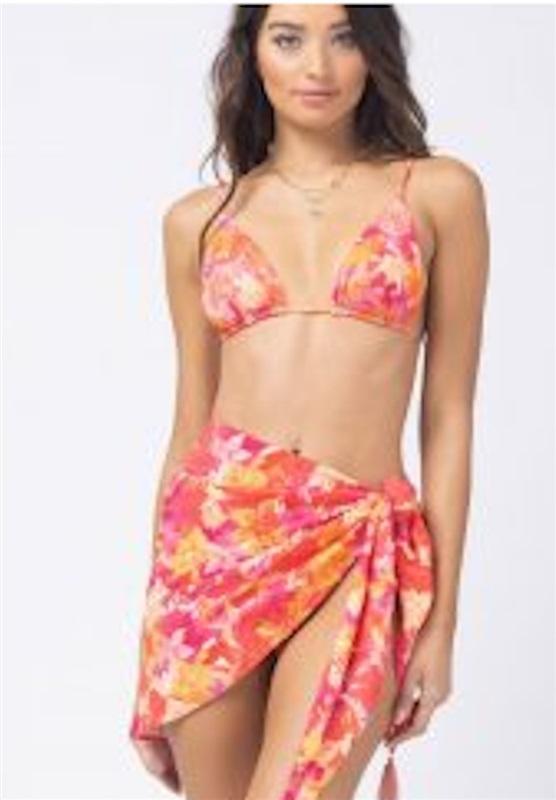 This printed triangle bikini top features adjustable shoulder straps and back tie.