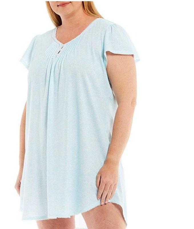 New Miss Elaine Silky Knit V Neck Short Sleeve Nightgown