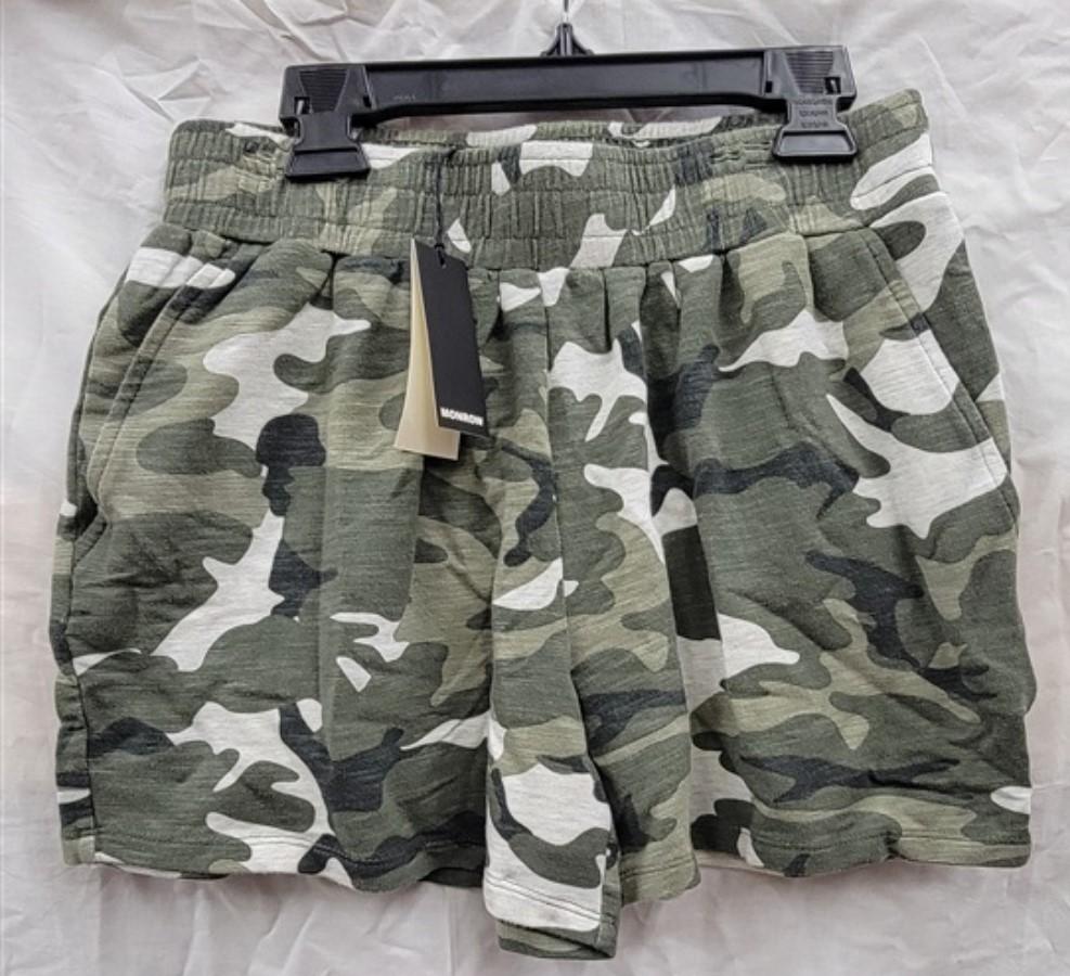 NWT Monrow S Camo Shorts Green Gray Pull On Pockets 122056