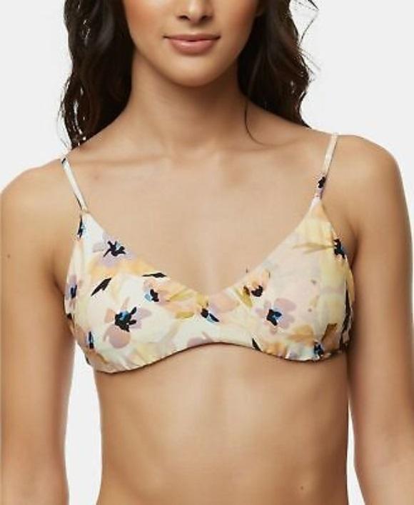 NWT O'Neill Leah S Yellow Floral Scoop Neck Halter Bikini Swim Top #102873