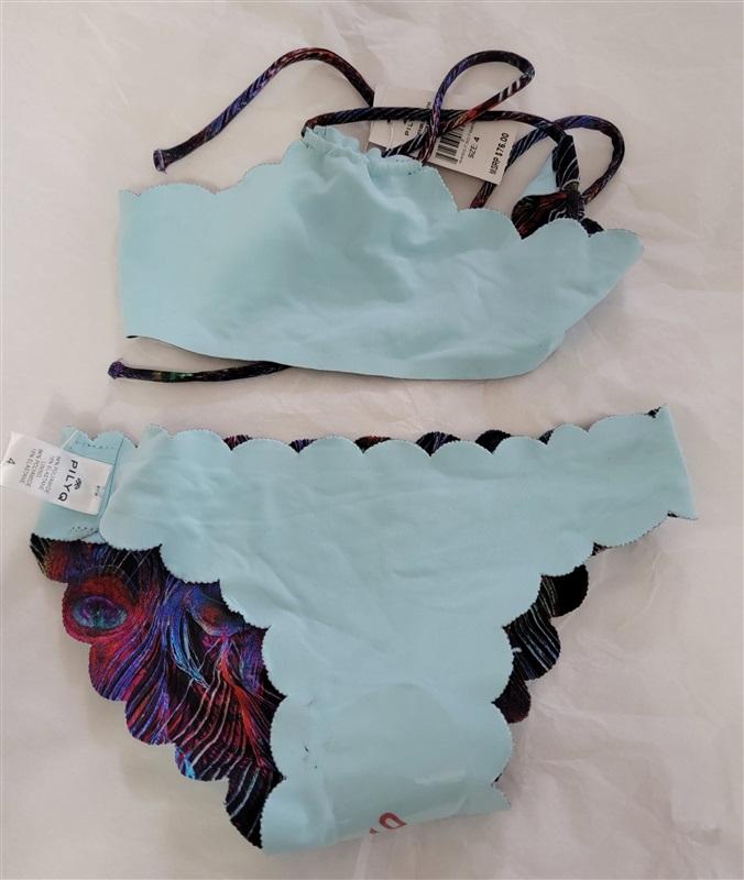 NWT PIlyq 4 Girls Peacock Plume Reversible High Neck Bikini Set 98783