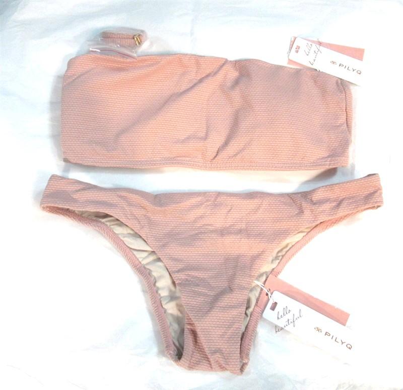 NWT Pilyq M Rose Gold Bandeau Top & Cheeky Bottom Swimsuit Pink 98507