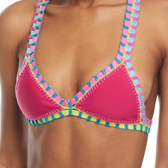 NWT Pilyq Platinum Magenta M Crochet Trim Triangle Bikini Swim Top #106759