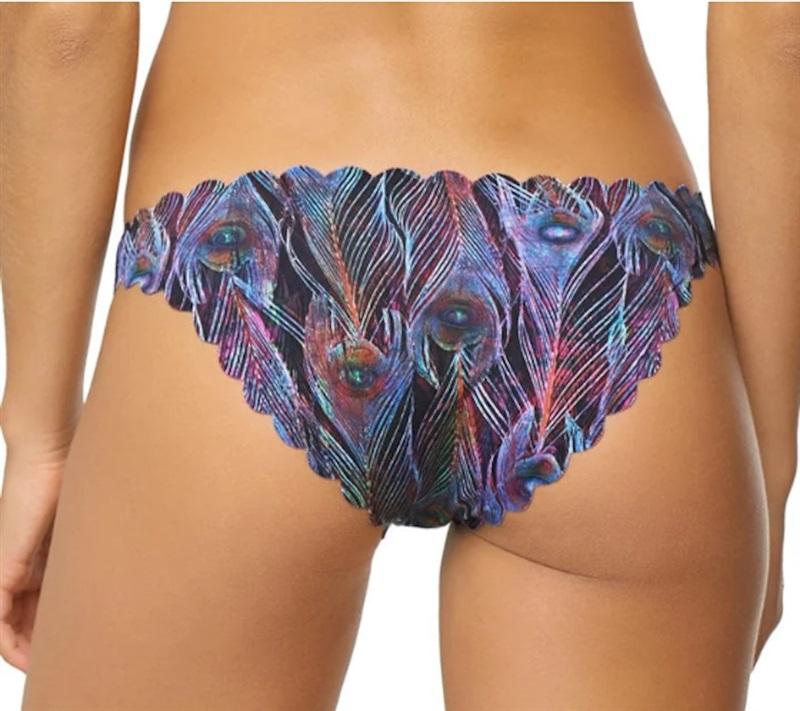 NWT Pilyq Plume S Reversible Peacock Print Bikini Swim Bottoms #97996