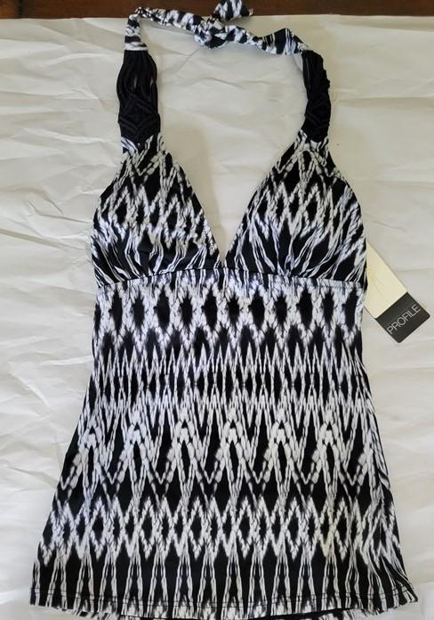 NWT Profile By Gottex Wild Zebra SZ 6 Halter Tankini Swim Top #95148