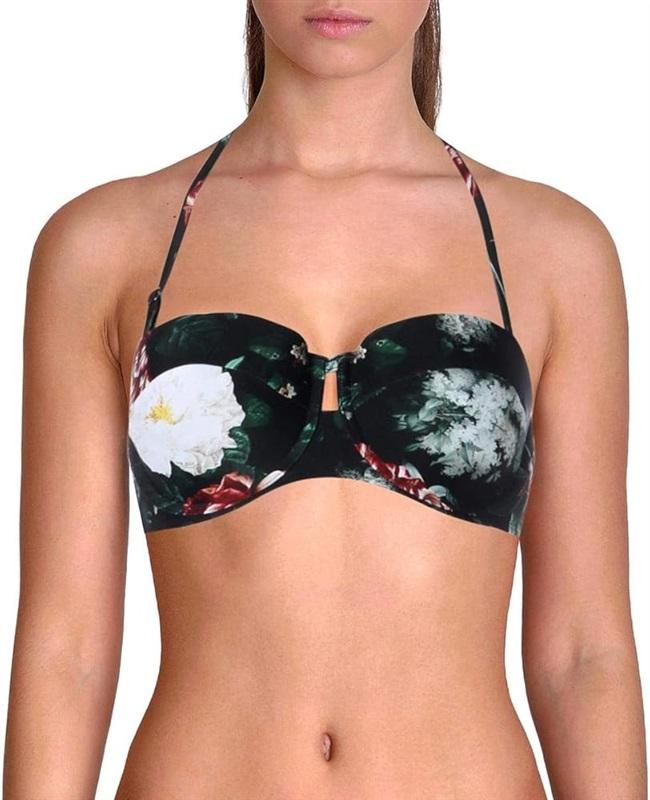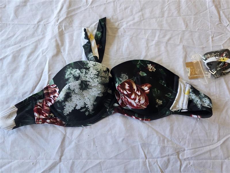 NWT Rachel Roy XS Garden Black Underwired Bandeau Bikini Swim Top 130435