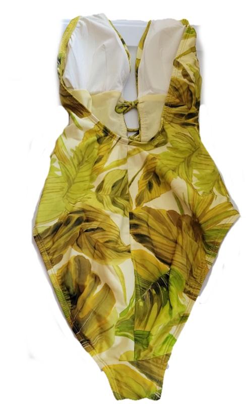 NWT Robin Piccone 4 Ana Open Back ONE-PIECE Yellow Leaf Swimsuit 110556