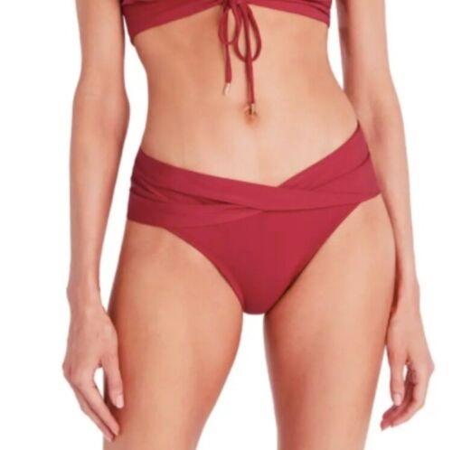 NWT Robin Piccone Ava XS Twist Pink Solid Full Bikini Swim Bottom 111237