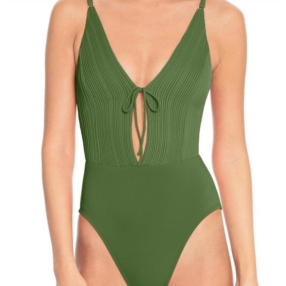 NWT Robin Piccone Lily SZ 8 Solid Green Ribbed One-Piece Swimsuit #103005