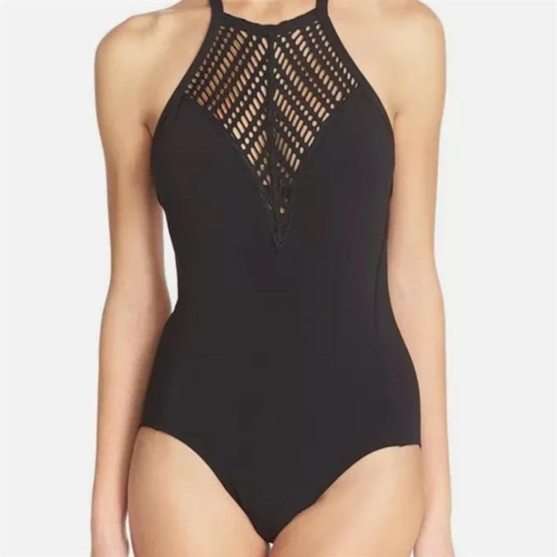 NWT Robin Piccone Sophia 8 Crochet High-Neck 1PC Swimsuit 110561