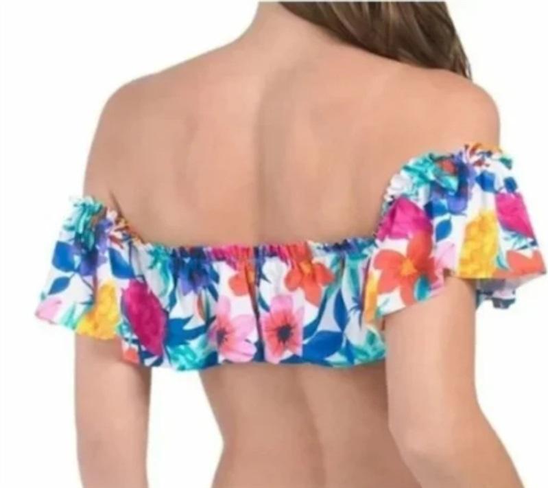 NWT Rod Beatie Bleu 14 Flounced Off Shoulder Bandeau Bikini Swim Top 111788