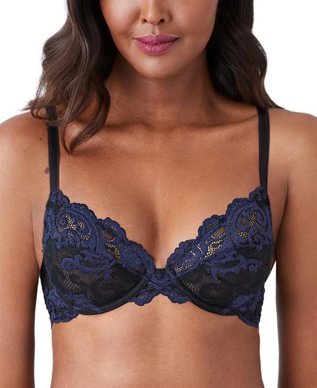 Stunning, romantic, cross-dyed scroll lace, a subtly sexy plunge and a curve-flattering fit keep you ready for anything in Wacoal's instantly iconic bra. Style #851322