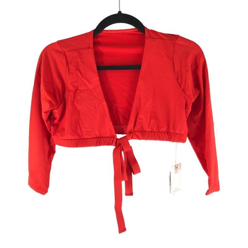NWTD Good American sz M Bright Poppy Red Sexy Boost Swim Top Long Sleeve 125126