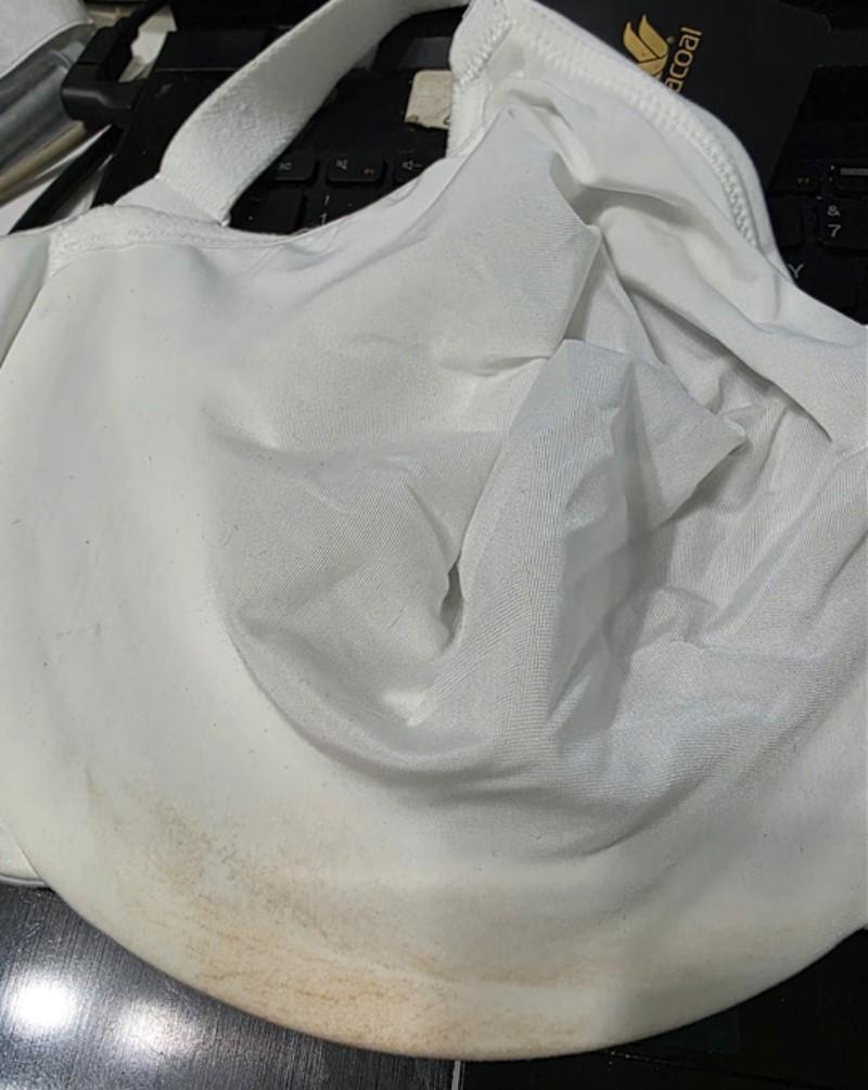 New with tags but has self tanner (I have not tried to remove) on the inside of the bra.