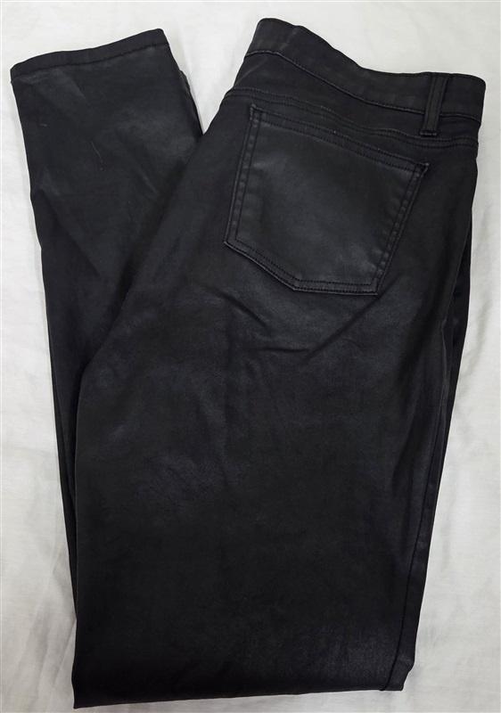 PO Eileen Fisher 12 Coated Denim 5 pocket Organic Cotton Jeans Black 130514