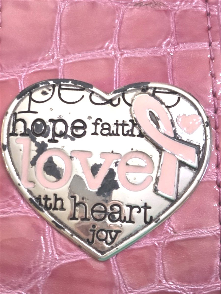 Condition: Excellent pre-owned condition the only thing I can see wrong is it has a funny texture and some distress to the heart Brighton Breast Cancer Awareness charm on the side of the bag. Please view photos.
