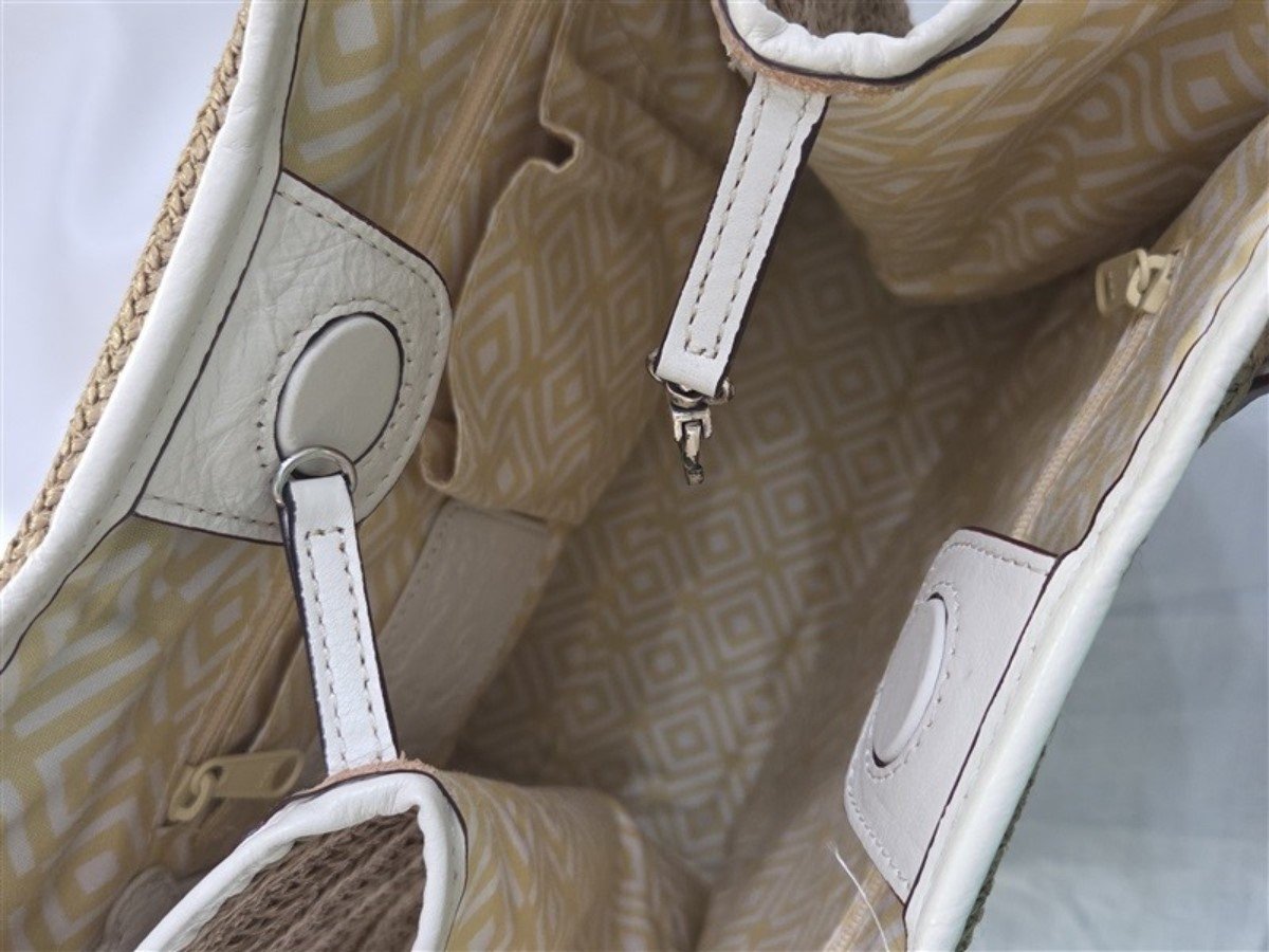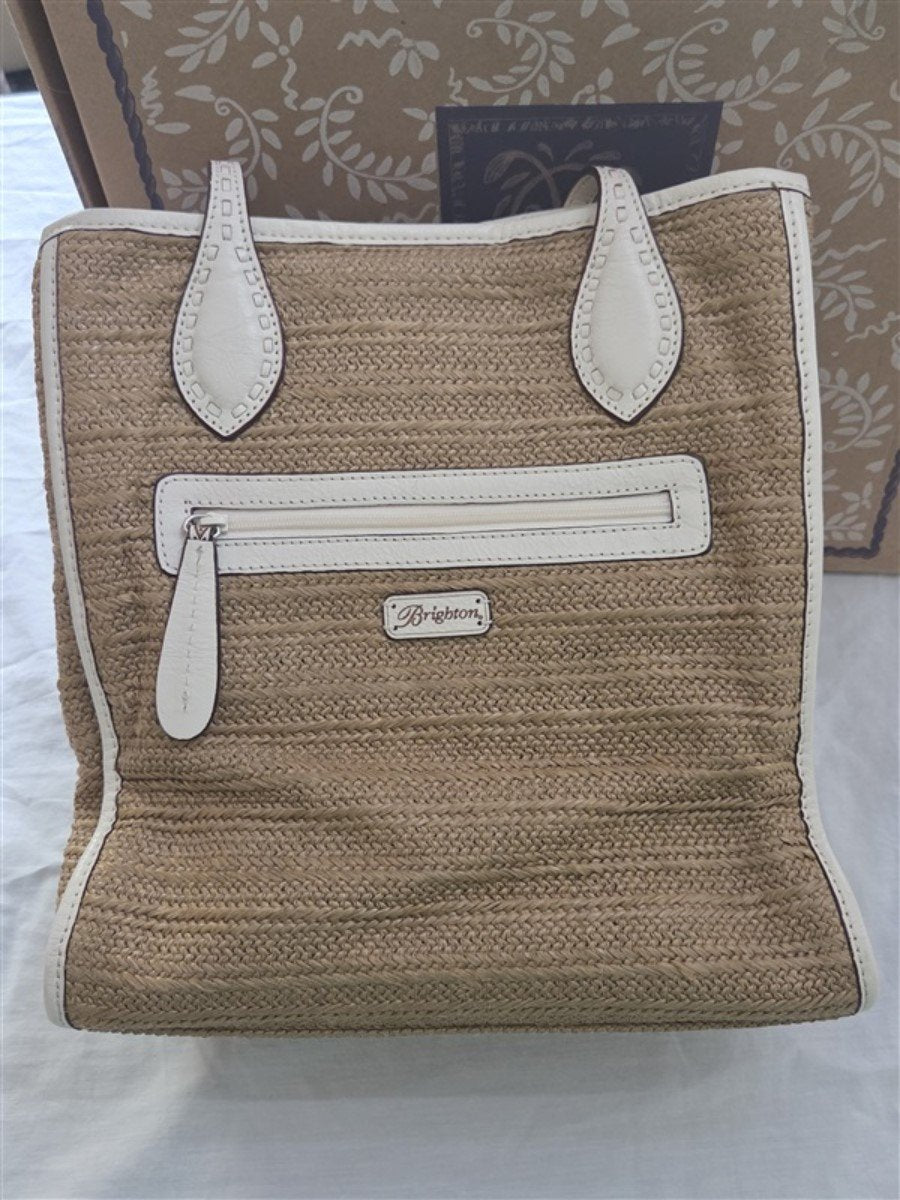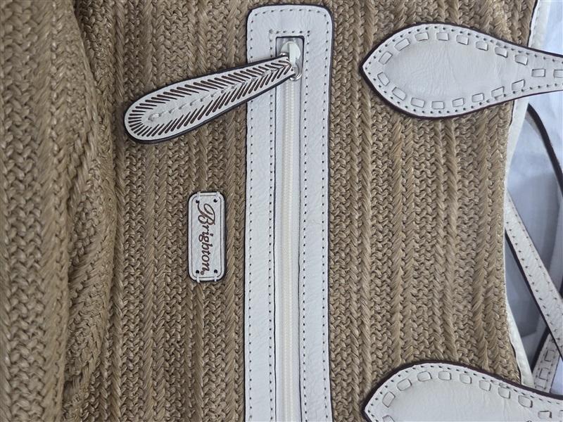 Vintage Brighton Woven Straw & Leather Shopper Bag Purse Dahlia Wh Tan #129260